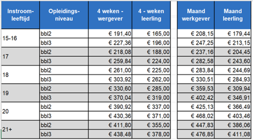 - De werkgever heeft de schooldagbonus betaald aan de student die dagonderwijs volgt bij een opleiding bbl2 of bbl3 in het domein:
